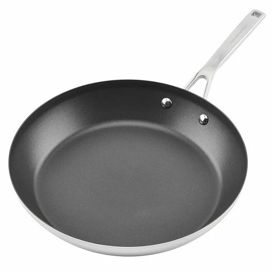 - KitchenAid stainless steel pan is finished with triple layer, PFOA-free nonstick to stand up to daily wear and tear