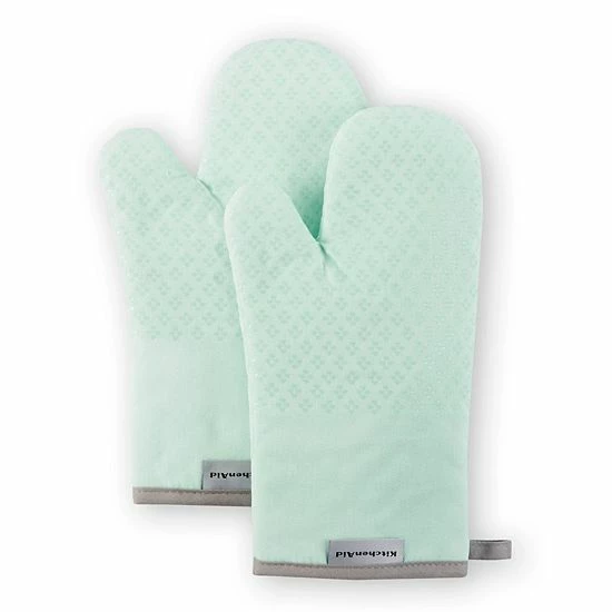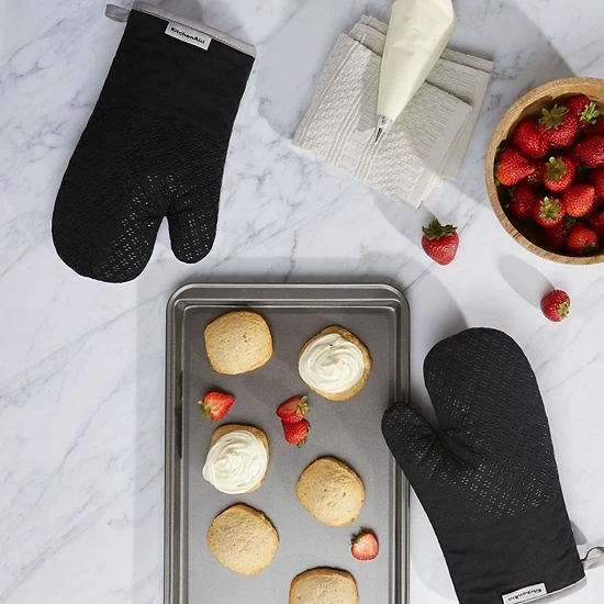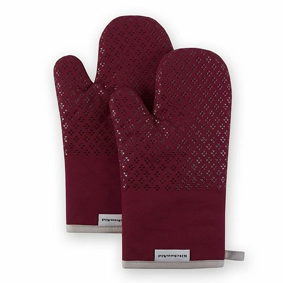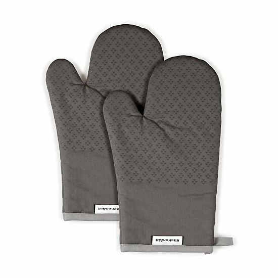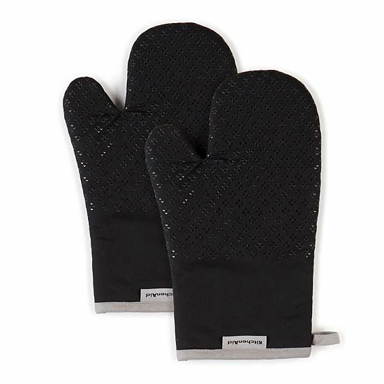Handle hot dishes the safe, easy way with these coordinating silicone-grip oven mitts from KitchenAid.