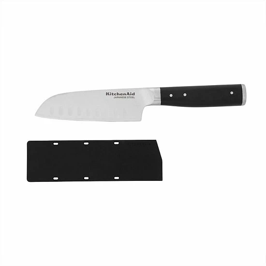 A versatile cutting essential, this KitchenAid 5-Inch Santoku Knife features a high-carbon imported Japanese steel blade hardened and tempered to provide a long lasting edge for a professional, quality cut every time.