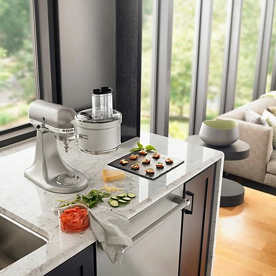 Designed to work with any KitchenAid stand mixer, this food processor attachment makes baking and cooking a breeze.