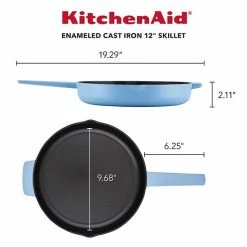 KitchenAid Enameled Cast-Iron Skillet With Helper Handle Blue